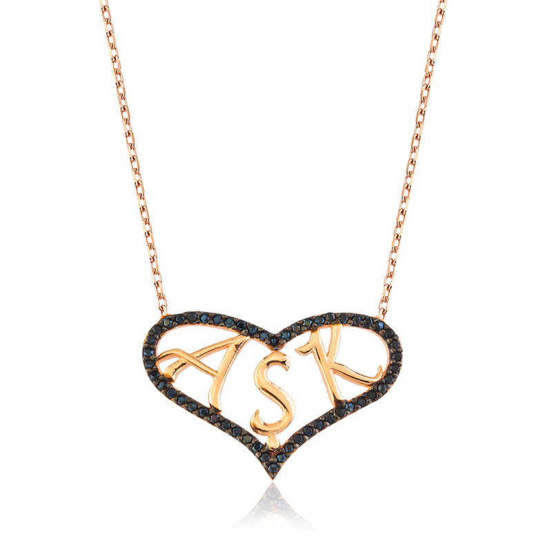 Gümüş Kalpli Aşk  Kolye Kalp deseniyle aşkı ifade eden bu kolye ile sevginiz, sevdiğiniz kadının teninde hayat bulsun. Genç sevgililerin ve kendini genç hissedenlerin özel günlerde seçebileceği bu kalpli  kolye ile sevdiğinizin boynunu aşkla süsleyin. Sizin olduğu kadar sevdiklerinizin de keyifle takacağı kalpli kolye sevdiğinize en güzel hediyelerden biri olacaktır. Kalpli aşk  kolye 925 ayar gümüşten imal edilmiştir. Gümüş üzerine rose kaplama yapılmıştır. Rose kaplama yapılan gümüş bayan kalpli aşk kolyeler parlaklığını uzun süre muhafaza eder ve oksitlenmesi gecikir. Kolye üzerinde bulunan siyah taşlar zirkondur. Gümüş olan zincir boyu ortalama 45 cm'dir. Tüm  kolyelerde olduğu gibi gümüş kalpli aşk  kolye de el emeği ile üretilmiştir. Gümüş ve değerli taşlar nedeniyle belirtilen ortalama ürün ağırlığında ± %10 sapma olabilmektedir.