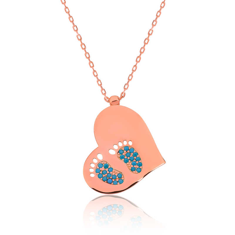 925 Ayar Gümüş Kalpli Ayak İzi Kadın Gümüş Kolye PT2610565