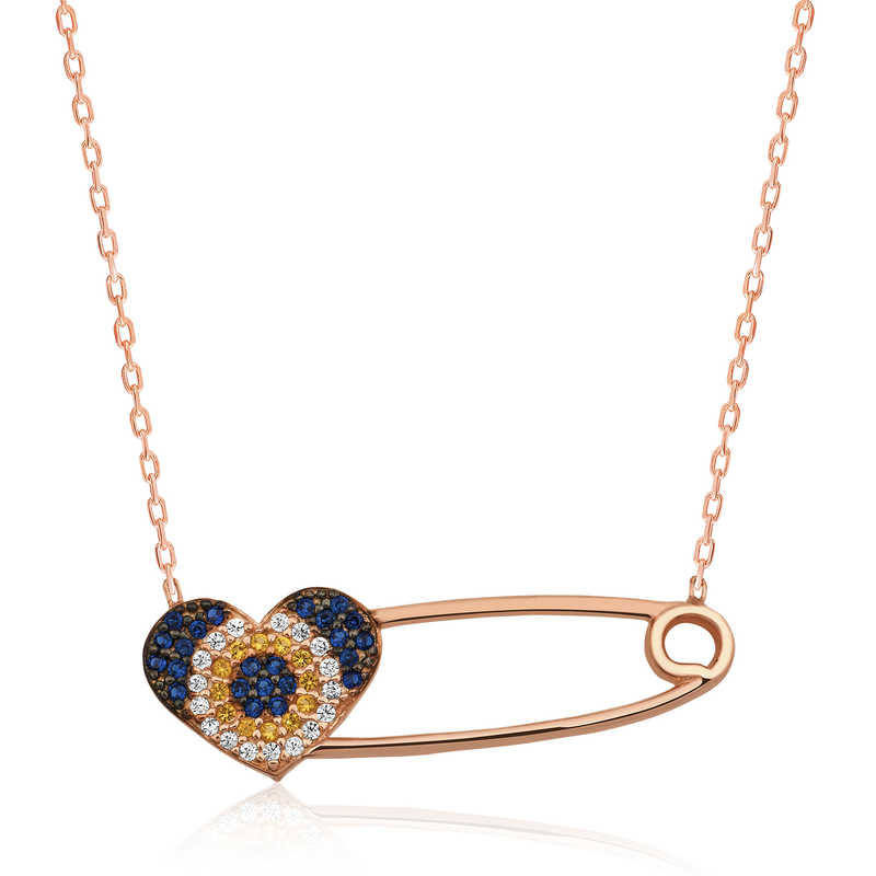 Gümüş Kalpli Çengel İğne Kolye Gümüş kalpli çengel iğne kolye, farklı tarz ve modelerde takılar kullanmayı sevenlerin tercih edeceği şık ve spor bir model... Bu şık kolye; doğum günü hediyesi, sevgililer günü hediyesi veya annelere hediye olarak özel günlerde tercih edilebilecek mükemmel bir seçenektir. Çengel kolye, 925 ayar gümüşten imal edilmiştir. Gümüş üzerine rose kaplama yapılmıştır. Rose kaplama yapılan gümüş kolyeler parlaklığını uzun süre muhafaza eder, gümüşü pembe rengine çevirir ve oksitlenmesi gecikir. Gümüş kolyenin zincir uzunluğu 45 cm’dir. Gümüş kolyelerin tamamında olduğu gibi gümüş kalpli çengel iğne kolye de el emeği ile üretilmiştir. Gümüş ve değerli taşlar nedeniyle belirtilen ortalama ürün ağırlığında ± %10 sapma olabilmektedir.
