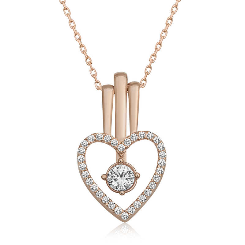 Gümüş Kalpli Tek Taş Kadın Kolye