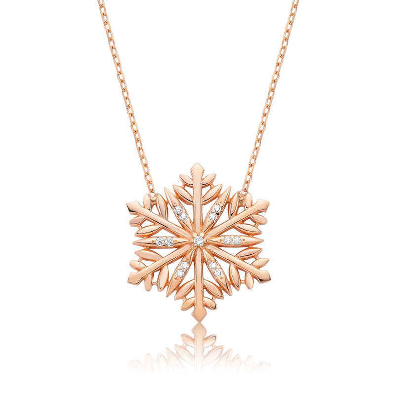 Her kar tanesinden aslında sadece bir tane var. Sevdiğiniz kişiye hediye ettiğiniz kar tanesi kolye ile onun sizin için eşsiz ve biricik olduğunu sessizce dillendirmiş oluyorsunuz. Sizlerde her zevke uygun gümüş kar tanesi bayan kolye modeli ile şıklığınıza ışıltı katın. Kar tanesi kolye 925 ayar gümüşten imal edilmiştir. Gümüş üzerine rose altın kaplama yapılmıştır. Rose altın kaplama yapılan gümüş kolye modelleri parlaklığını uzun süre muhafaza eder ve oksitlenmesi gecikir. Kolye üzerinde bulunan beyaz taşlar zirkondur. Gümüş olan zincir boyu ortalama 45 cm'dir. Gümüş kar tanesi kolye modeli diğer kar tanesi kolye modelleri gibi el emeği ile üretilmiştir. Gümüş ve değerli taşlar belirtilen nedeniyle ürün ağırlığında ± %10 sapma olabilmektedir.