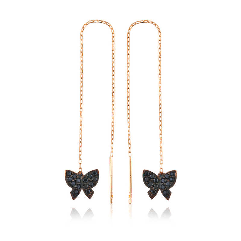Özgürlüğü masumiyeti ve saflığı simgeleyen kelebekler, tertemiz sevginin ve aşkın ifadesidir. Bahar kelebekleri kolye anlam itibari ile aşkın küçük bir kıvılcım ile başladığı daha sonra büyük bir sabır ile büyüdüğü ve en sonunda ilan-ı aşkı ifade eder. Sizin olduğu kadar sevdiklerinizin de keyifle takacağı gümüş zincir kelebek bayan küpe; doğum günü hediyesi, sevgililer günü hediyesi veya annelere hediye olarak özel günlerde tercih edilebilecek mükemmel bir seçenektir. Küpe 925 ayar gümüşten imal edilmiştir. Gümüş üzerine rose kaplama yapılmıştır. Rose kaplama yapılan ürünler parlaklığını uzun süre muhafaza eder, gümüşe pembe rengini verir ve oksitlenmeyi geciktirir. Üzerinde bulunan siyah taşlar zirkondur. Tüm gümüş bayan küpelerde olduğu gibi gümüş kelebek zincir bayan küpe de el emeği ile üretilmiştir. Gümüş ve değerli taşlar nedeniyle belirtilen ürün ağırlığında ± %10 sapma olabilmektedir.