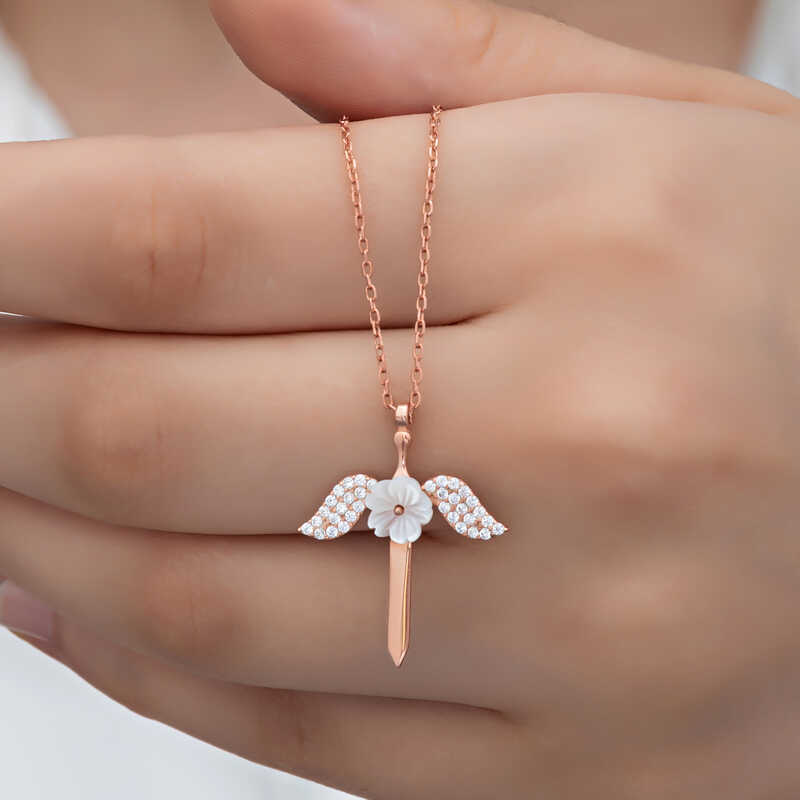 Melekler saflığın ve temizliğin simgeleridir. Bu nedenle melek kolye hediye edilen kişiye melek kadar saf ve temiz olduğu mesajı verilmektedir... Aşkınızı meleklerin koruması için tasarlanan bu özel manolya çiçeği melek kadın kolyeyi sevgilinize; doğum günü, sevgililer günü ve özel günlerde hediye ederek onları mutlu edebilirsiniz. Kolye; 925 ayar gümüşten imal edilmiştir. Gümüş melek kadın kolye üzerine rodyum kaplama yapılmıştır. Rodyum kaplama yapılan tüm kolyeler parlaklığını uzun süre muhafaza eder, gümüşe pembe rengi verir. Tüm gümüş kolyelerde olduğu gibi bu gümüş manolya çiçeği melek kadın kolye de el emeği ile üretilmiştir. Gümüş ve değerli taşlar nedeniyle ürün ağırlığında ± %10 sapma olabilmektedir.