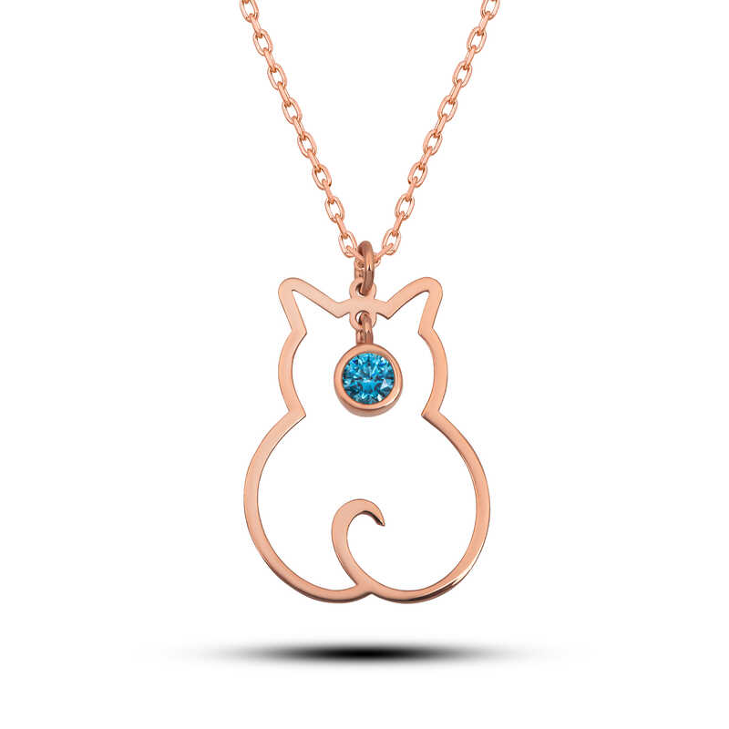 Gümüş Mart Ayı Doğum Taşı Kedi Kadın Kolye
