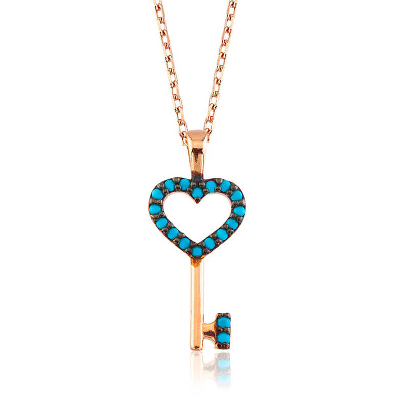 Kalbinizin anahtarını ışıl ışıl firuze taşlarıyla kalbinizde taşımaya ne dersiniz? Bu şık kolye; doğum günü hediyesi, sevgililer günü hediyesi veya anneler gününde hediye olarak özel günlerde tercih edilebilecek mükemmel bir seçenektir. Bu şık tasarım 925 ayar gümüşten imal edilmiştir. Bu kolye üzerinde rose kaplama yapılmıştır. Rose kaplama yapılan kolyeler parlaklığını uzun süre muhafaza eder, gümüş rengini pembe renge çevirir ve oksitlenmeyi geciktirir. Üzerinde bulunan taşlar firuzedir. Tüm gümüş kolyelerde olduğu gibi gümüş mavi kalpli anahtar kolye de el emeği ile üretilmiştir. Gümüş ve değerli taşlar nedeniyle belirtilen ürün ağırlığında ± %10 sapma olabilmektedir.
