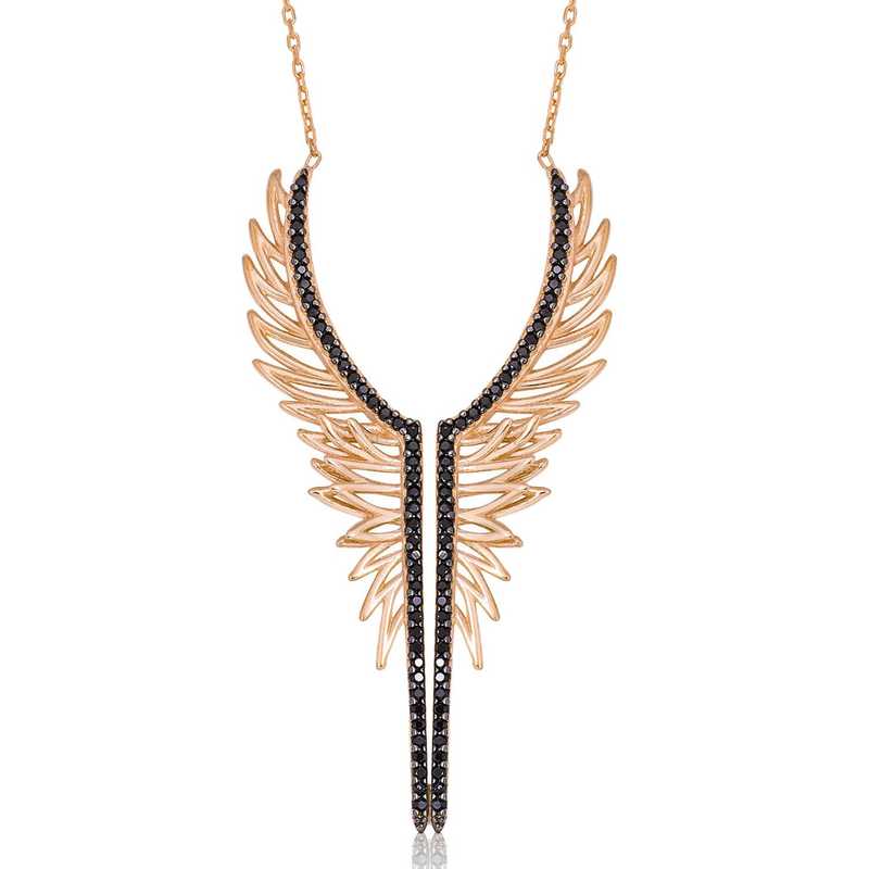 Melekler saflığın ve temizliğin simgeleridir. Bu nedenle melek kolye hediye edilen kişiye melek kadar saf ve temiz olduğu mesajı verilmektedir... Bu özel melek kanadı tasarımı 925 ayar gümüşten imal edilmiştir... Tasarım melek kanadı kolye üzerinde bulunan taşlar zirkondur. Bu gümüş kolye üzerine rose kaplama yapılmıştır. Rose kaplama yapılan tüm kolyeler parlaklığını uzun süre muhafaza eder, gümüşe pembe rengi verir , oksitlenmeyi geciktirir. Zincir boyu ortalama 45 cm'dir. Tüm gümüş kolyelerde olduğu gibi bu gümüş melek kanadı kolye de el emeği ile üretilmiştir. Gümüş ve değerli taşlar nedeniyle ürün ağırlığında ± %10 sapma olabilmektedir.
