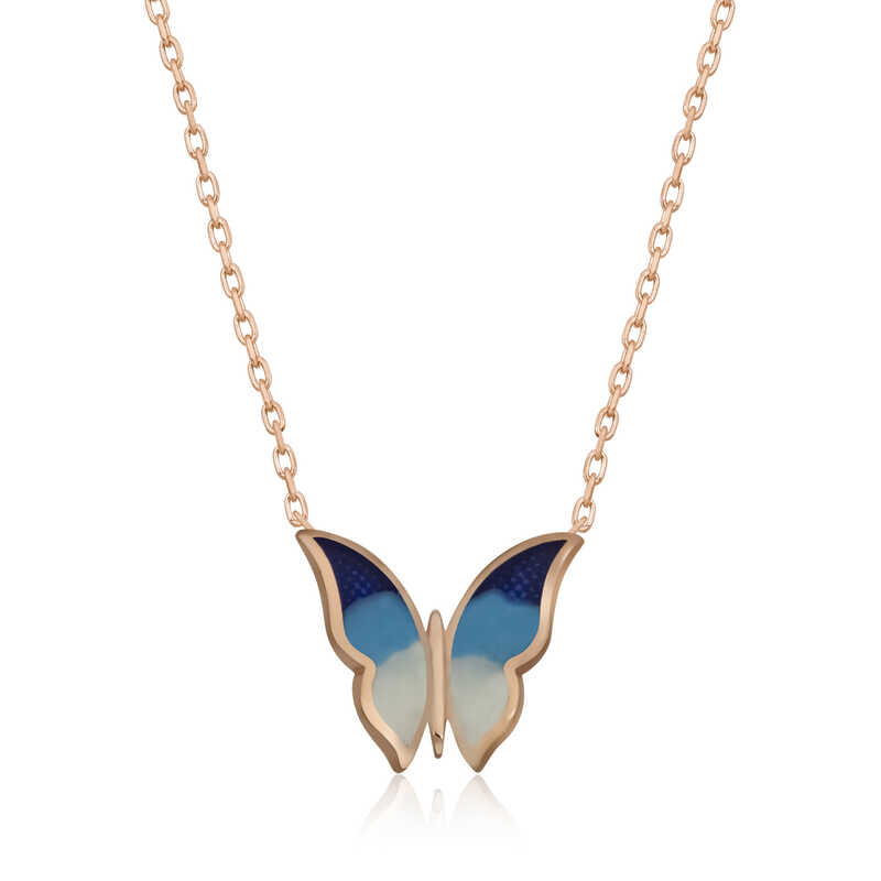 Özgürlüğü masumiyeti ve saflığı simgeleyen kelebekler, tertemiz sevginin ve aşkın ifadesidir. Bahar kelebekleri kolye anlam itibari ile aşkın küçük bir kıvılcım ile başladığı daha sonra büyük bir sabır ile büyüdüğü ve en sonunda ilan-ı aşkı ifade eder. Sizin olduğu kadar sevdiklerinizin de keyifle takacağı minimal kelebek bayan kolye en güzel hediyelerden biri olacaktır. Kolye 925 ayar gümüşten imal edilmiştir. Gümüş üzerine rose kaplama yapılmıştır. Rose kaplama yapılan gümüş bayan kolyeler parlaklığını uzun süre muhafaza eder, ve oksitlenmeyi geciktirir. Kolye üzerinde bulunan renkler mine işlemesidir. Gümüş olan zincir boyu ortalama 45 cm'dir. Tüm gümüş bayan kolyelerde olduğu gibi gümüş minimal kelebek bayan kolye de el emeği ile üretilmiştir. Gümüş ve değerli taşlar nedeniyle belirtilen ürün ağırlığında ± %10 sapma olabilmektedir.