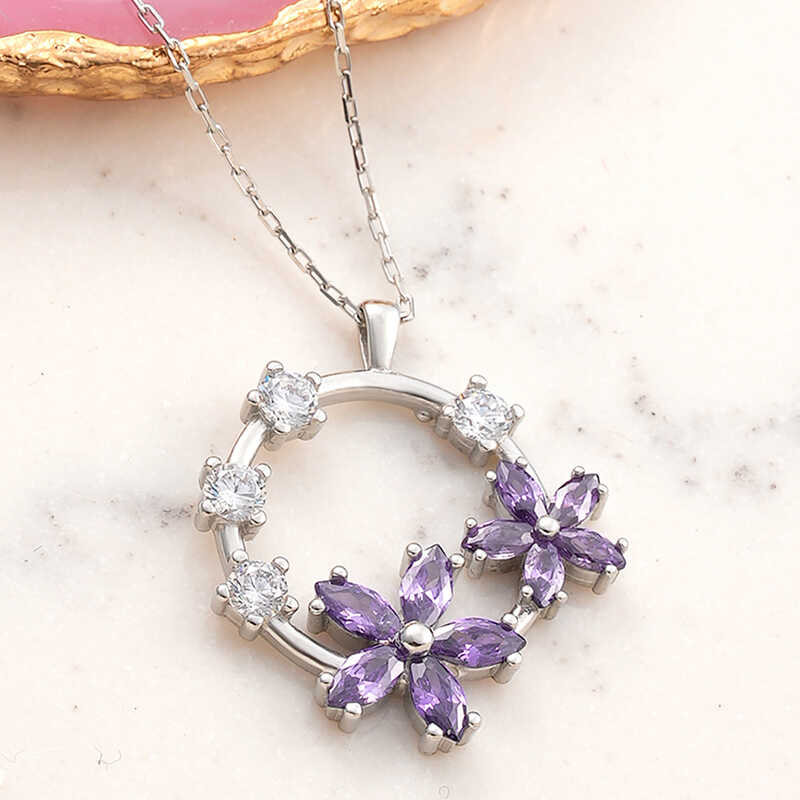 Sevdiklerinize duygularınızı ifade etmenin yolu neden çiçek desenli zarif bir kolye olmasın? Özel zamanlarda O’na gönderebileceğiniz, hediye seçenekleri arasında yer alan bu şık kolye sevdiklerinizi sevindirmenin en güzel yolları arasında yer almaktadır. En kaliteli, en parlak, en ışıltılı taşlarla hazırlanmış gümüş mor çiçek kadın kolye sevgisini bir kez daha anlatmak isteyenleri, sen bir çiçeksin demek isteyenleri bekliyor. Bu özel tasarım gümüş mor çiçek kadın kolye 925 ayar gümüşten imal edilmiştir. Gümüş üzerine rodyum kaplama yapılmıştır. Rodyum kaplama yapılan gümüş kadın kolye modelleri parlaklığını uzun süre muhafaza eder ve oksitlenmesi gecikir. Gümüş olan zincir boyu ortalama 45 cm'dir. Tüm kadın gümüş kolye modellerinde olduğu gibi gümüş mor çiçek kadın kolye de el emeği ile üretilmiştir. Gümüş ve değerli taşlar nedeniyle belirtilen ürün ağırlığında ± %10 sapma olabilmektedir.