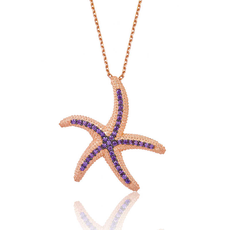 Gümüş Mor Deniz Yıldızı Kolye