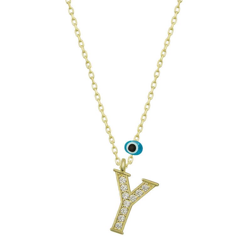 Gümüş Nazar Gold Y Harfi Kadın Kolye