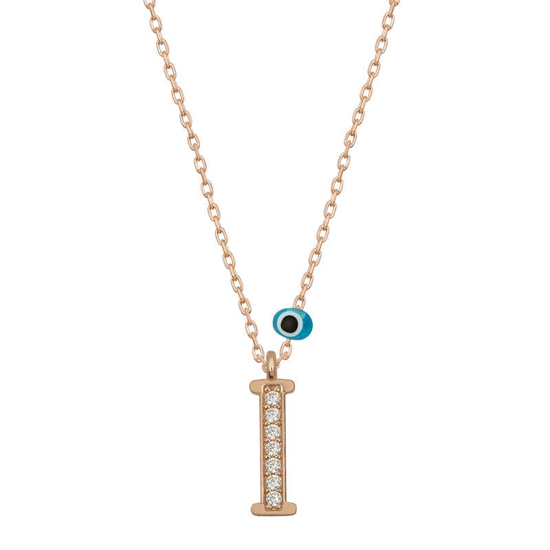 Gümüş Nazar Rose I Harfi Kadın Kolye