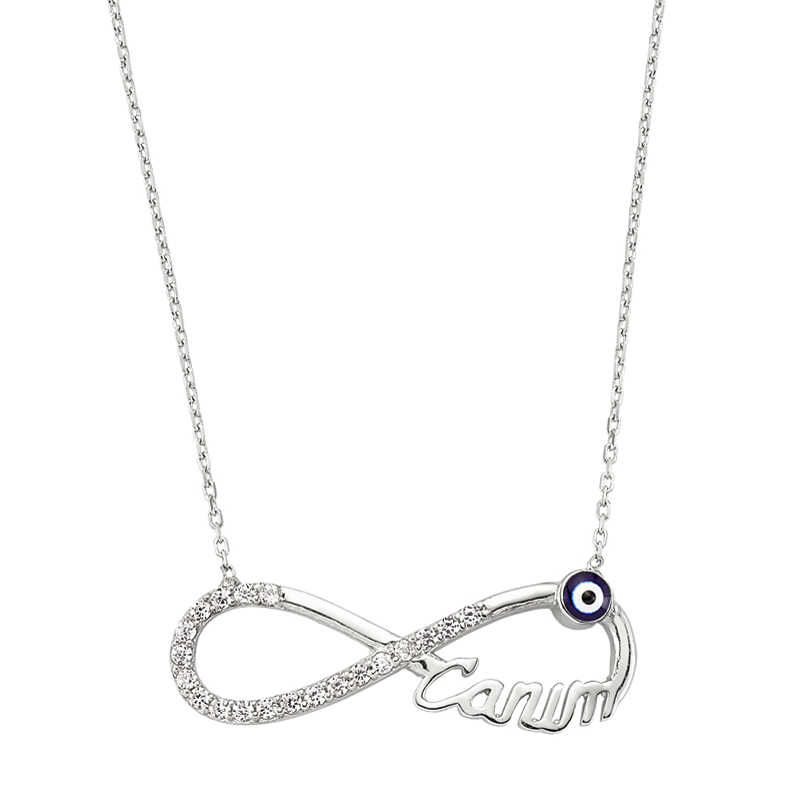 925 Ayar Gümüş Nazarlı Sonsuzluk Canım Kadın Gümüş Kolye PT0460033
