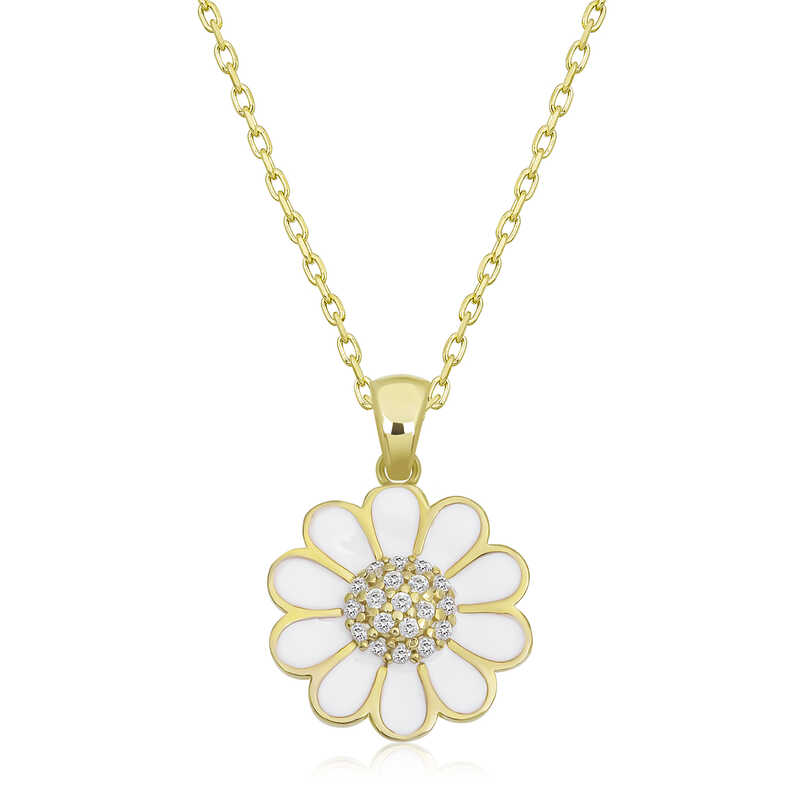 Papatya çiçeği temiz sevgi anlamını ifade eder. En büyük özelliklerinden biri her sapında bir tane olmasıdır. Bu güzellik tasarlanarak ortaya çıkan bu ışıl ışıl kolye zirkon taşlarla süslendi... Bu şık kolye; doğum günü hediyesi, sevgililer günü hediyesi veya annelere hediye olarak özel günlerde tercih edilebilecek mükemmel bir seçenektir. Gümüş papatya kadın kolye 925 ayar gümüşten imal edilmiştir. Bu kolye üzerinde gold kaplama vardır. Gold kaplama yapılan ürünler parlaklığını uzun süre muhafaza eder. Üzerinde bulunan ışıl ışıl taşlar zirkondur. Tüm gümüş kadın kolye modellerinde olduğu gibi gümüş papatya kadın kolye modeli de el emeği ile üretilmiştir. Gümüş ve değerli taşlar nedeniyle belirtilen ortalama ürün ağırlığında ± %10 sapma olabilmektedir.