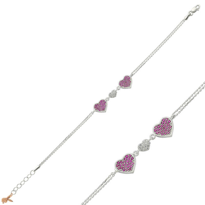Aşkın ve sevginin bütün saflığıyla kucak açtığı en yüce tasarımdır kalp... Bu şık kalp deseniyle sevdiklerinizi mutlu etmeye ne dersiniz? Aşk dolu bu bilekliği sevgilinize doğum günü , sevgililer günü yada özel günlerde hediye ederek onları mutlu edebilirsiniz... Bu pembe kalpli bileklik 925 ayar gümüşten imal edilmiştir. Gümüş üzerine rodyum kaplama yapılmıştır. Rodyum kaplama yapılan gümüş bayan bileklik modelleri parlaklığını uzun süre muhafaza eder, oksitlenmeyi geciktirir. Üzerinde bulunan taşlar zirkondur. Tüm gümüş bayan bileklik modellerinde olduğu gibi gümüş pembe kalpli bayan bileklik de el emeği ile üretilmiştir. Gümüş ve değerli taşlar nedeniyle belirtilen ürün ağırlığında ± %10 sapma olabilmektedir.