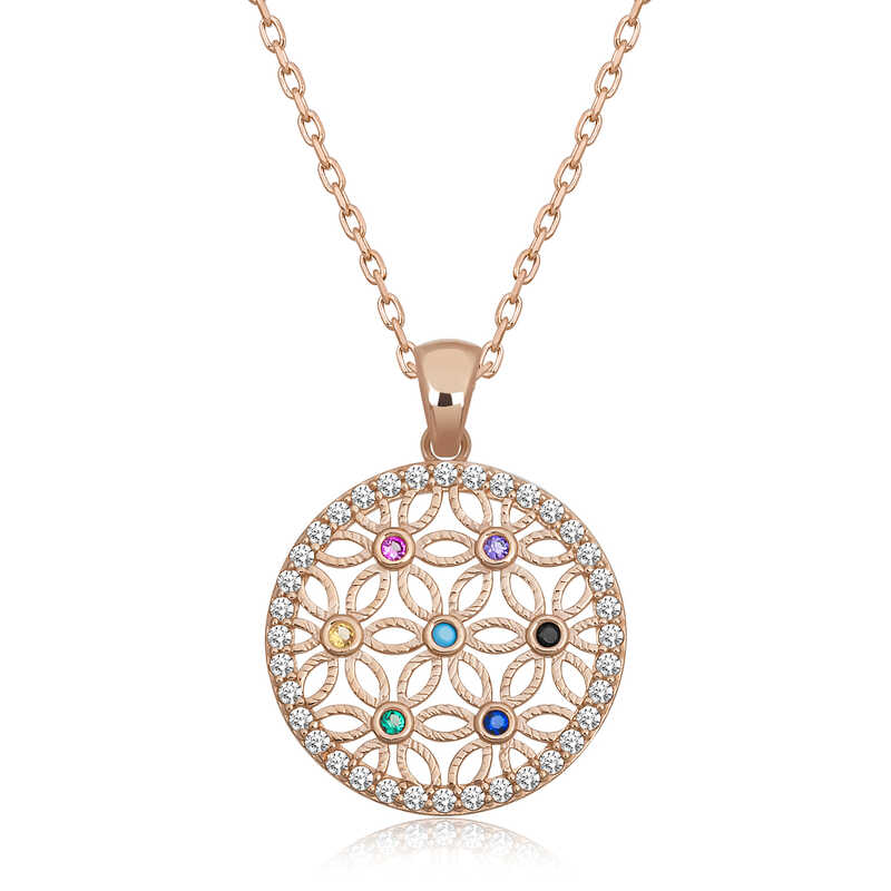 Yaşam çiçeği, yaradılışın bütün sırrını ve bilgisini barındıran tek geometrik şekildir. Gerçekte çember değil küredir. Üç boyutlu olarak hatta çok boyutlu olarak düşünülmelidir. Yaşam çiçeği içinde Platon’un 5 cismin ve Metatron'un küpü'nü barındırır. Bu şekiller de tüm varoluşu inşa ederler. Kadim öğretilerde en güçlü ve özel sembollerden birisi olarak kabul edilen yaşam çiçeği; sonsuzluğun, kusursuzluğun ve mükemmelliğin gücünün özüdür. Siz de sevdiklerinizi ya da kendinizi bu özel kolye ile sevindirebilirsiniz. Yaşam çiçeği kadın kolye modeli 925 ayar gümüşten imal edilmiştir. Gümüş üzerine rose kaplama yapılmıştır. Rose kaplama yapılan gümüş kadın kolye modelleri parlaklığını uzun süre muhafaza eder ve oksitlenmesi gecikir. Kolye üzerinde bulunan taşlar zirkondur. Gümüş olan zincir boyu ortalama 45 cm'dir. Bu yaşam çiçeği kadın kolye modeli diğer gümüş kadın kolye modellerinde olduğu gibi el emeği ile üretilmiştir. Gümüş ve değerli taşlar nedeniyle belirtilen ortalama ürün ağırlığında ± %10 sapma olabilmektedir.