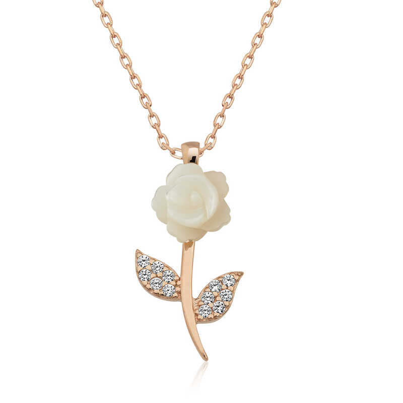 Beyaz güller tarih boyunca farklı kültürlerde görülmüş, dini veya siyasi semboller taşımıştır. Gül tarih boyunca şiirlere ve resimlere ilham kaynağı olmuştur. Bununla birlikte beyaz gül aşkın masumluğun sembolü olmuştur ve en çok bu yönüyle tanınır. Siz de sevginizi anlatabileceğiniz gümüş beyaz gül kolyeyi sevdiğinize armağan edebilir, ona olan sevginizi teninde hissettirebilirsiniz. Bu şık kolye; doğum günü hediyesi, sevgililer günü veya özel günlerde tercih edilebilecek mükemmel bir seçenektir. Kolye; 925 ayar gümüşten imal edilmiştir. Gümüş üzerine rose kaplama yapılmıştır.Rose kaplama yapılan ürünler gümüşe pembe bakır rengi verir. Diğer kolyelerde olduğu gibi gümüş beyaz gül kolye de el emeği ile üretilmiştir. Gümüş ve değerli taşlar nedeniyle belirtilen ortalama ürün ağırlığında ± %10 sapma olabilmektedir.