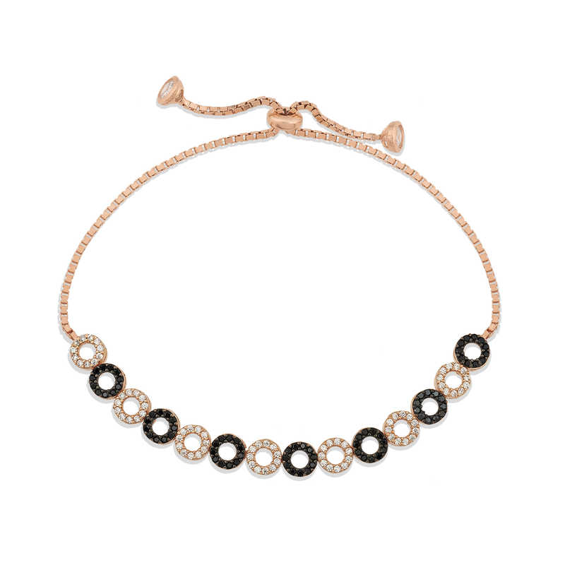 Gümüş Rose Siyah Beyaz Taşlı Halka Asansör Bileklik