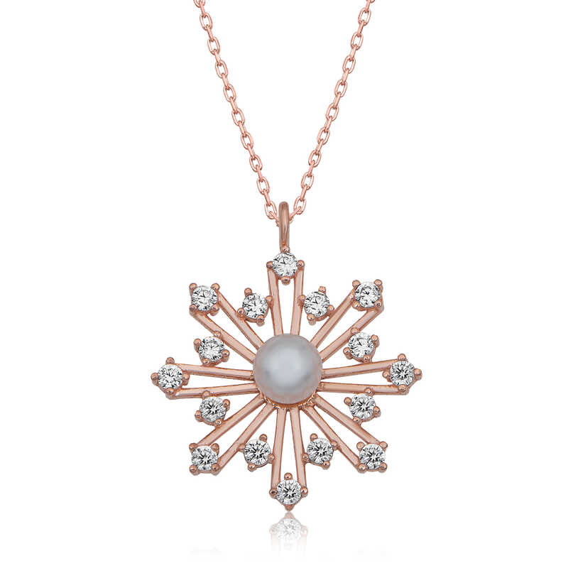 Gümüş Rose İncili Kar Tanesi Kadın Kolye