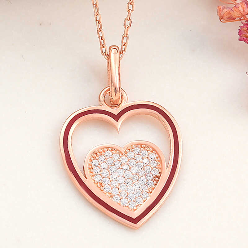 925 Ayar Gümüş Rose Kalp Kadın Kolye T8185