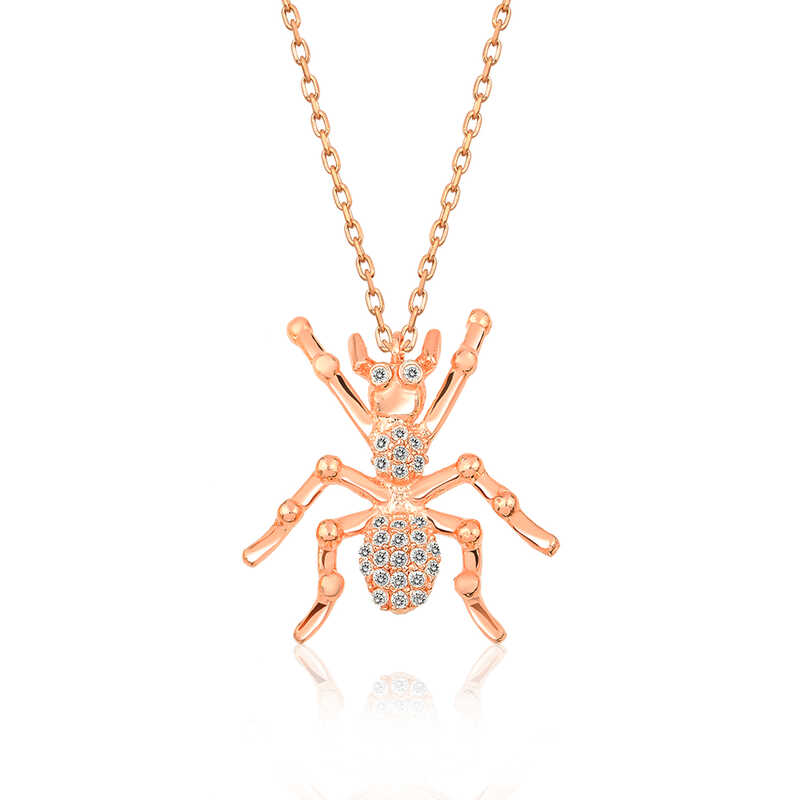 Gümüş Rose Örümcek Kolye