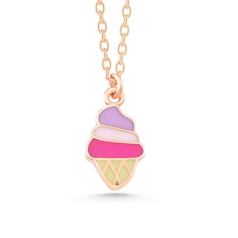 Gümüş Rose Renkli Dondurma Kadın kolye