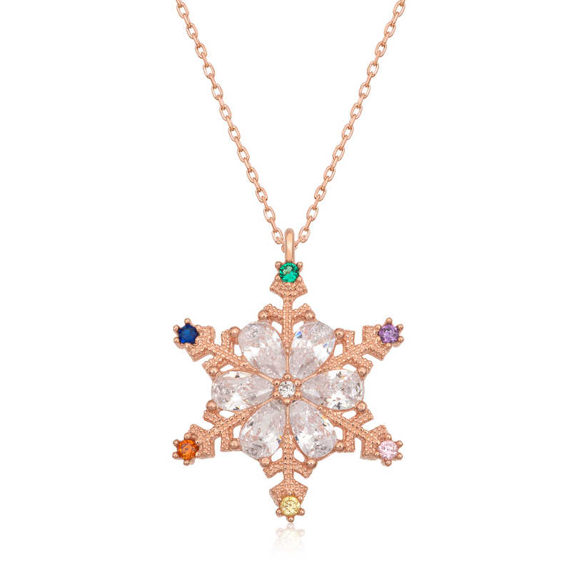 Gümüş Rose Renkli Taşlı Kar Tanesi Kadın Kolye