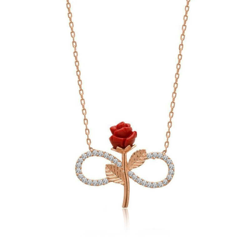 Gümüş Rose Sonsuz Gül Kolye