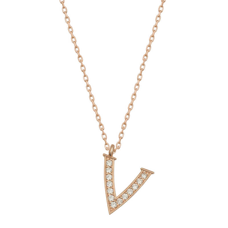 Gümüş Rose V Harfi Kadın Kolye
