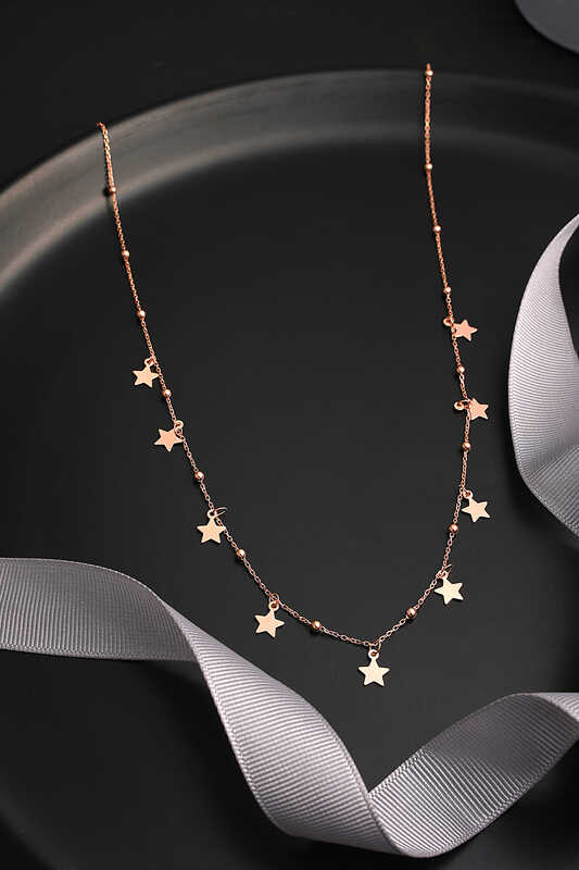 Gümüş Rose Yıldızlı Dorika Kadın Kolye