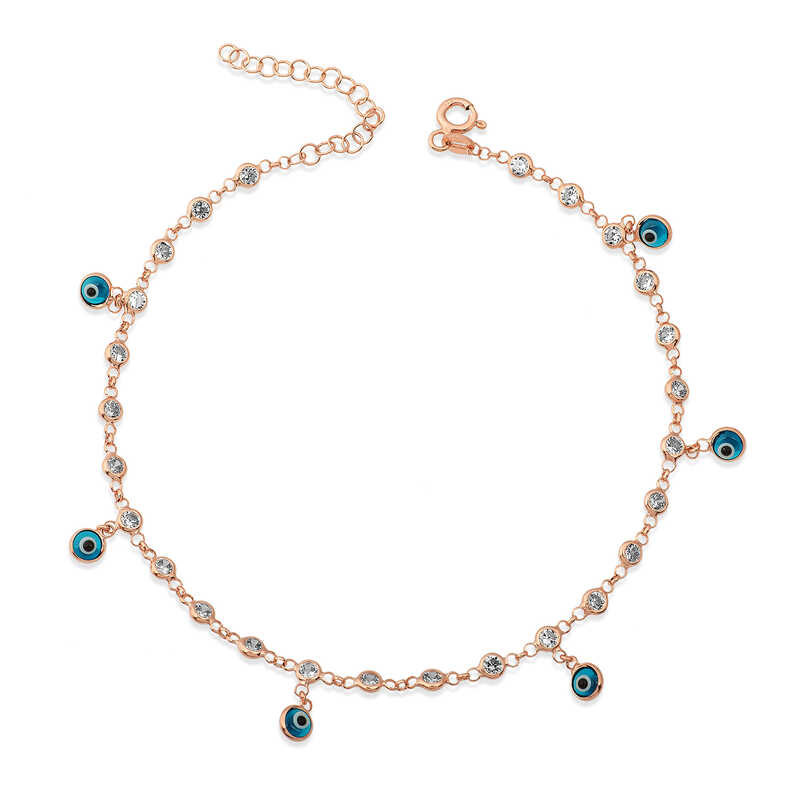 Gümüş Sıralı Zirkon Taşlı Nazarlı Rose Halhal