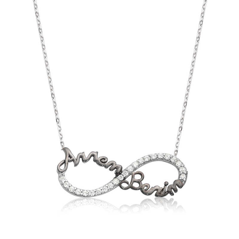 Annenize sonsuz sevginizi ifade etmenin en güzel ve en anlamlı yollarından biri sonsuzluk kolyesidir. Şık tasarımıyla bu özel kolye ile annenize olan sonsuz sevginizi ifade edebilir, sonsuza kadar birlikte olacağınız mesajı verebilirsiniz. Sevilen ve şıklığından ödün vermeyen bu modeli; doğum günü hediyesi, anneler günü hediyesi veya özel günlerde tercih edebilirsiniz. Gümüş sonsuzluk canım annem kolye, 925 ayar gümüşten imal edilmiştir. Gümüş üzerine rodyum kaplama yapılmıştır. Rodyum kaplama yapılan gümüş kolye parlaklığını uzun süre muhafaza eder, oksitlenmesi gecikir. Tüm gümüş kolye modellerinde olduğu gibi bu gümüş sonsuzluk annem benim kolye modeli de tamamı el emeği ile üretilmiştir. Gümüş ve değerli taşlar nedeniyle belirtilen ortalama ürün ağırlığında ± %10 sapma olabilmektedir.