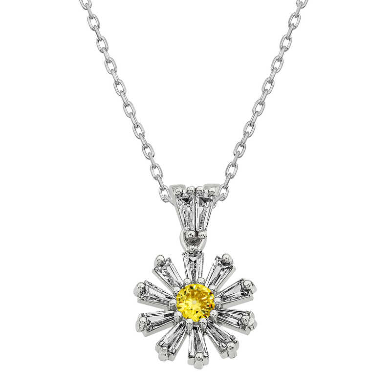 Gümüş Trapez Taşlı Çiçek Bayan Kolye