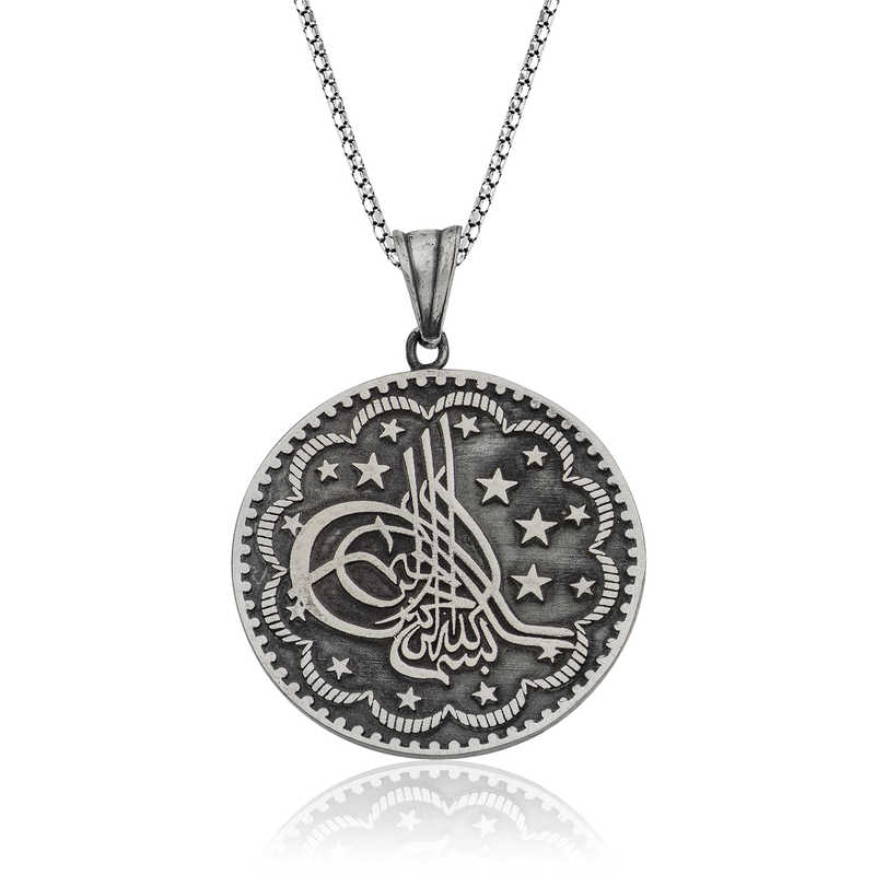Tuğra, Osmanlı sultanlarının imzası anlamına gelir. Her tuğra; ona ait olan padişahın ismini, varlığını, hükümdarlığını ifade eder. Tuğra sembolü her padişaha göre farklı olmak üzere birçok şekilde günümüze ulaşmıştır. Tuğra Osmanlının her döneminde korunmuş, önemini hiç kaybetmemiştir. Ve zamanla hat sanatımızda da önemli bir yere sahip olup, günümüzde hattatlar tarafından sanatsal olarak yaşatılmaktadır. Bu sanatı yansıtan tuğralı şık gümüş kolyeyi severek kullanabilir doğum günü, sevgililer günü veya özel günlerde hediye olarak tercih edebilirsiniz. Tuğra kolye modeli 925 ayar gümüşten imal edilmiştir. Gümüş üzerine oksit kaplama yapılmıştır. Zincir boyu ortalama 55 cm'dir. Tüm gümüş kolye modellerinde olduğu gibi bu gümüş tuğra kolye modeli de tamamı el emeği ile üretilmiştir. Gümüş nedeniyle belirtilen ortalama ürün ağırlığında ± %10 sapma olabilmektedir.