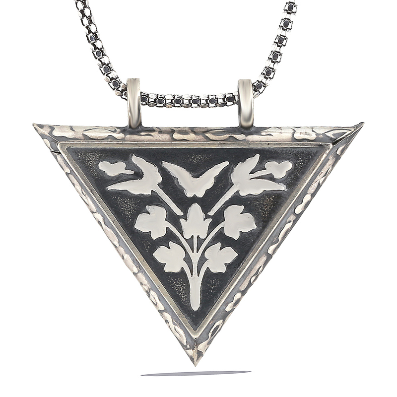 Gümüş Üçgen İçi Açılabilen Çiçek Muskalık Kolye