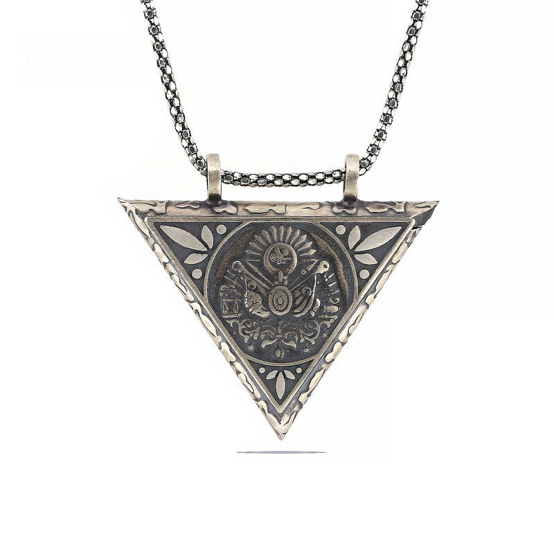 Gümüş Üçgen İçi Açılabilen Osmanlı Arma Muskalık Kolye