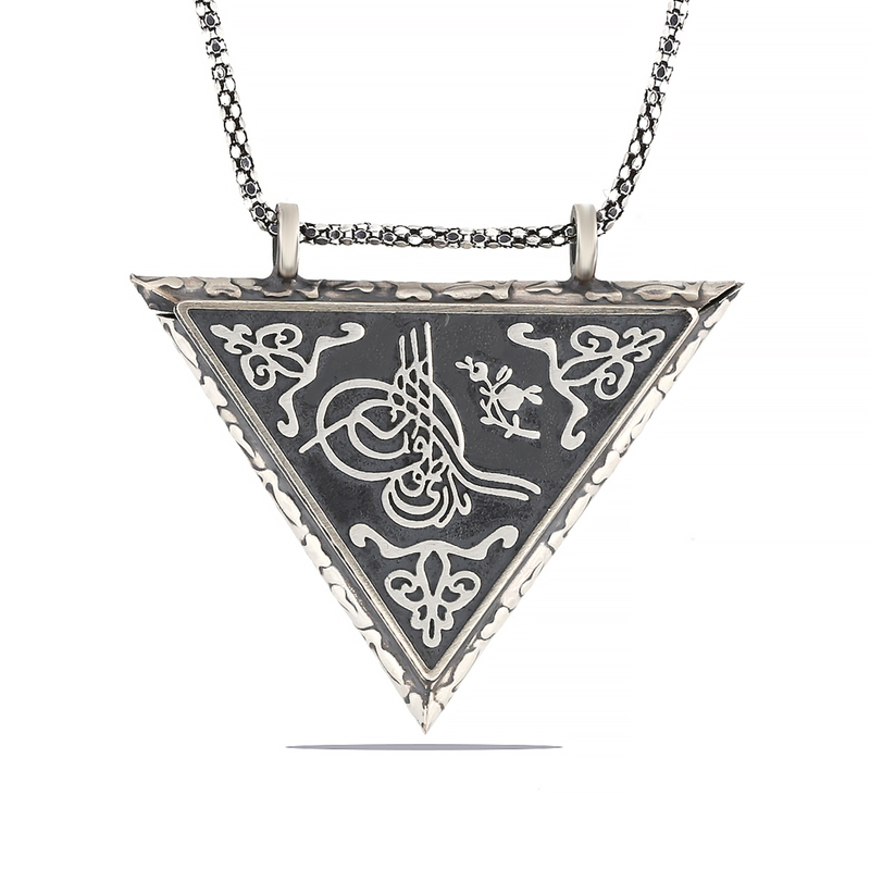 Gümüş Üçgen İçi Açılabilen Tuğra Muskalık Kolye