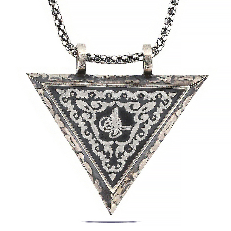 Gümüş Üçgen İçi Açılabilen Tuğra Muskalık Kolye