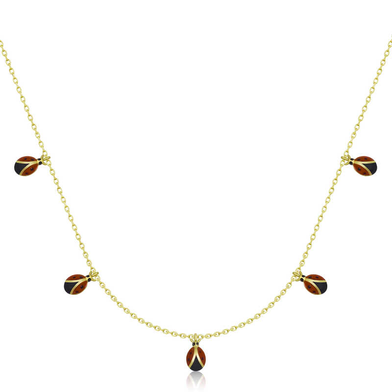 Uğur böceği, pek çok kültürde iyiliğin, şansın, talihin simgesi olarak bilinmektedir. Orta Avrupa’da eline uğur böceği konan kızın evleneceği, Kuzey Avrupa’da ki bazı ülkelerde ise üzerine uğur böceği konan kişinin dileklerinin gerçekleştireceği inancı yaygındır. Şansın simgesi olan uğur böceği şans kolye size ve sevdiklerinize uğur getirecek. Uğur böceği şans kadın kolye modeli 925 ayar gümüşten imal edilmiştir. Gümüş üzerine gold kaplama yapılmıştır. Gold kaplama yapılan gümüş uğur böceği kolye modelleri parlaklığını uzun süre muhafaza eder ve oksitlenmesi gecikir. Gümüş olan zincir boyu ortalama 45 cm'dir. Gümüş uğur böceği kadın kolye modeli el emeği ile üretilmiştir. Gümüş ve değerli taşlar nedeniyle belirtilen ortalama ürün ağırlığında ± %10 sapma olabilmektedir.