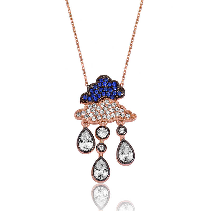 Kolye; doğum günü hediyesi, sevgililer günü hediyesi veya annelere hediye olarak özel günlerde tercih edilebilecek mükemmel bir seçenektir. Bu anlamlı ve şık kolye; 925 ayar gümüşten imal edilmiştir. Bu gümüş kolye üzerine rose kaplama yapılmıştır. Rose kaplama yapılan tüm kolyeler parlaklığını uzun süre muhafaza eder, gümüşü pembe renge dönüştürür ve oksitlenmeyi geciktirir. Zincir boyu ortalama 45 cm'dir. Yağmur bulutu kolye üzerinde bulunan taşlar zirkondur. Tüm gümüş kolyelerde olduğu gibi bu gümüş yağmur bulutu kolye de el emeği ile üretilmiştir. Gümüş ve değerli taşlar nedeniyle ürün ağırlığında ± %10 sapma olabilmektedir.