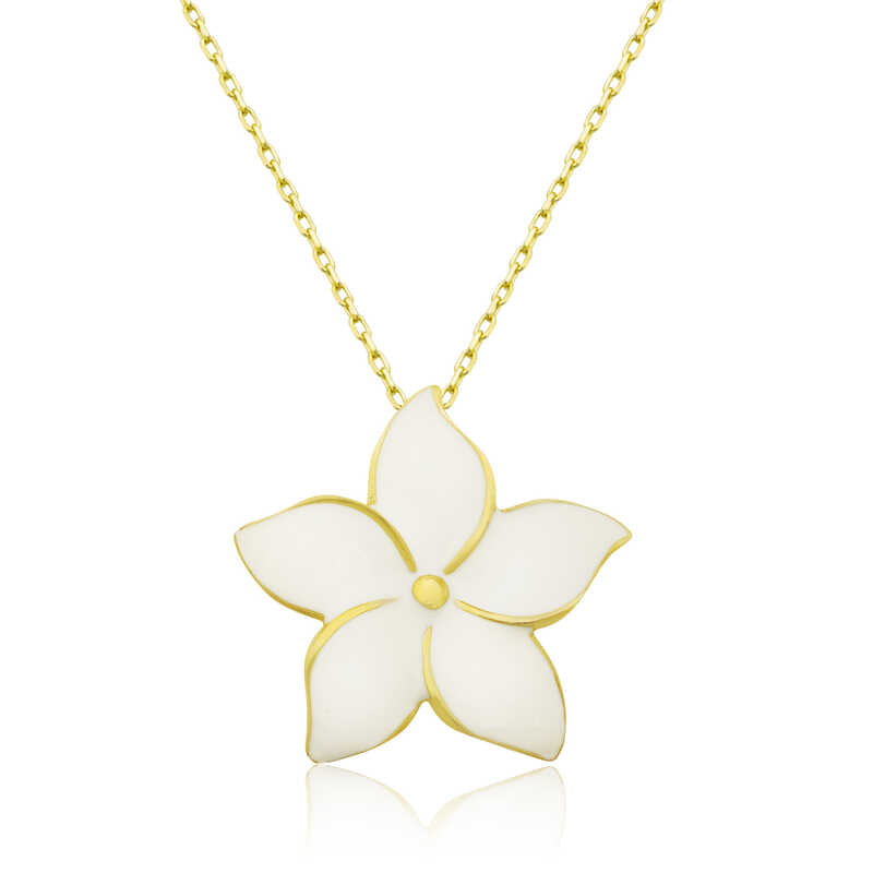 Yasemin çiçeği, çekicilik ve güzelliği ifade etmektedir. Bu özellikleri tüm sadeliği ve zarafetiyle yansıtır. Siz de sevdiklerinizi ya da kendinizi bu özel kolye ile sevindirebilirsiniz. Sevdiğinize doğum günü, sevgililer günü ve özel günlerde tercih verebileceğiniz mükemmel bir hediye seçeneğidir. Bu mükemmel kolye tasarımı 925 ayar gümüşten imal edilmiştir. Gümüş üzerine gold kaplama yapılmıştır. Gold kaplama yapılan tüm gümüş kadın kolye modelleri parlaklığını uzun süre muhafaza eder, oksitlenmesi gecikir. Kolye üzerinde bulunan taşlar zirkon'dur. Gümüş zincir boyu zincir boyu ortalama 45 cm'dir. Ürünlerimizin tamamı el emeği ile üretilmiştir. Gümüş ve değerli taşlar nedeniyle belirtilen ortalama ürün ağırlığında ± %10 sapma olabilmektedir.