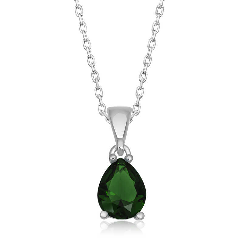 Gümüş Yeşil Kristal Damla Taşlı Kadın Kolye