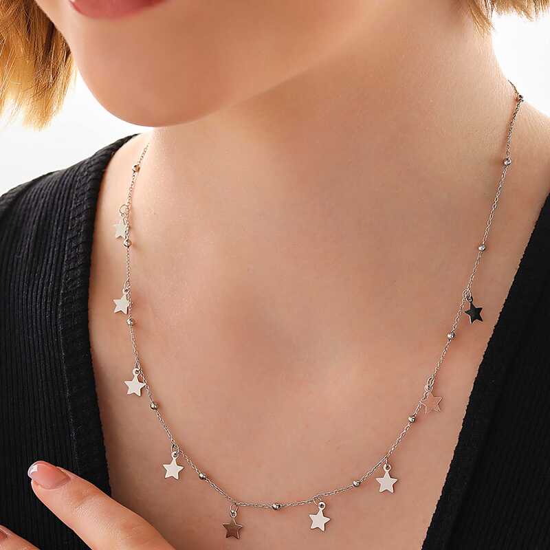 Gümüş Yıldızlı Dorika Kadın Kolye