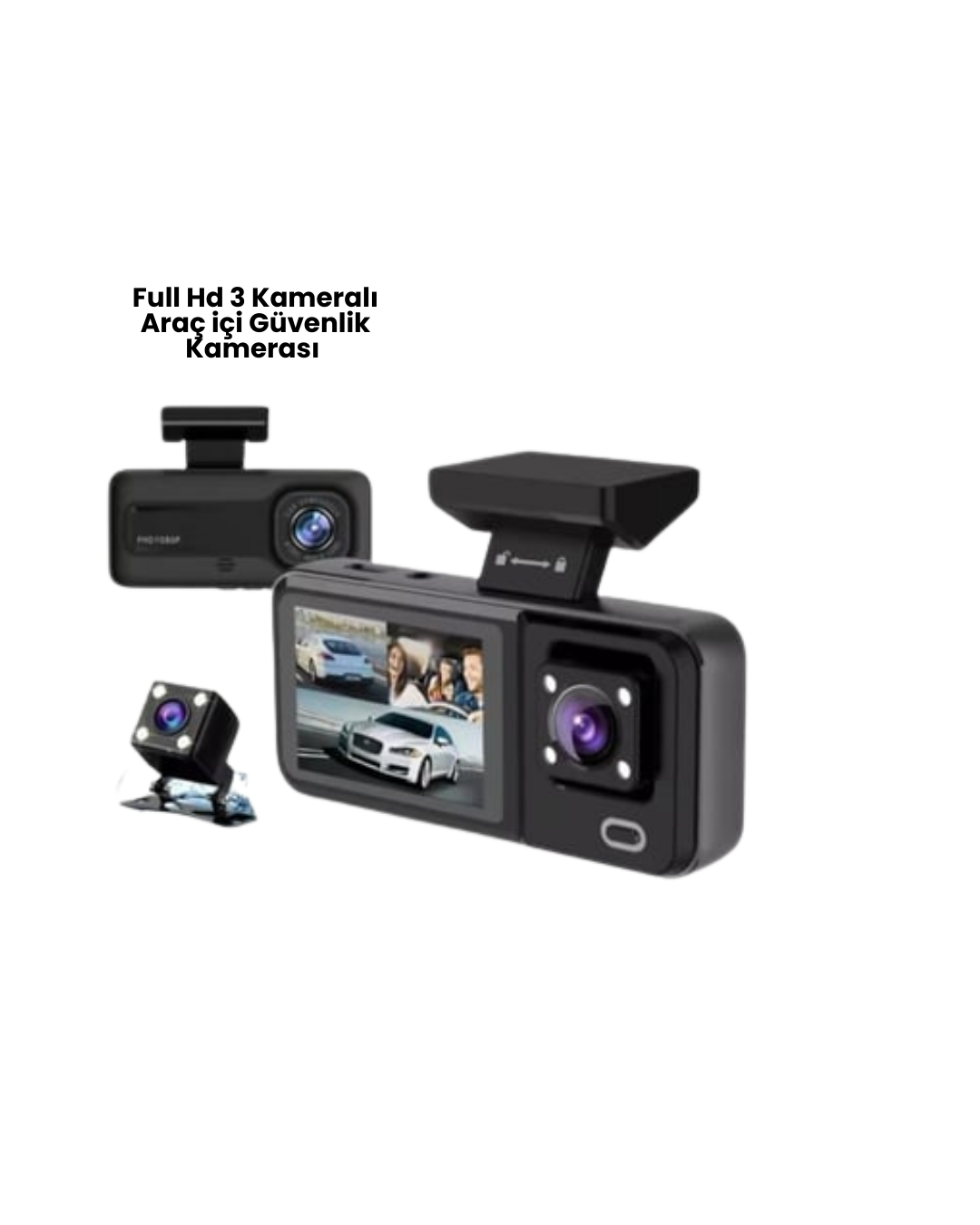 Bu 3’lü araç kamerası seti, sürüş esnasında ve park halindeyken maksimum güvenlik sağlamak isteyen araç sahipleri için geliştirilmiştir. Ön kamera Full HD 1080p çözünürlükte yolun tamamını net şekilde kaydederken, arka kamera geri manevra ve park anlarında arka görüşü güvence altına alır. İç kamera ise araç içini detaylı şekilde izleyerek özellikle ticari araç kullanıcıları için ek güvenlik sunar.