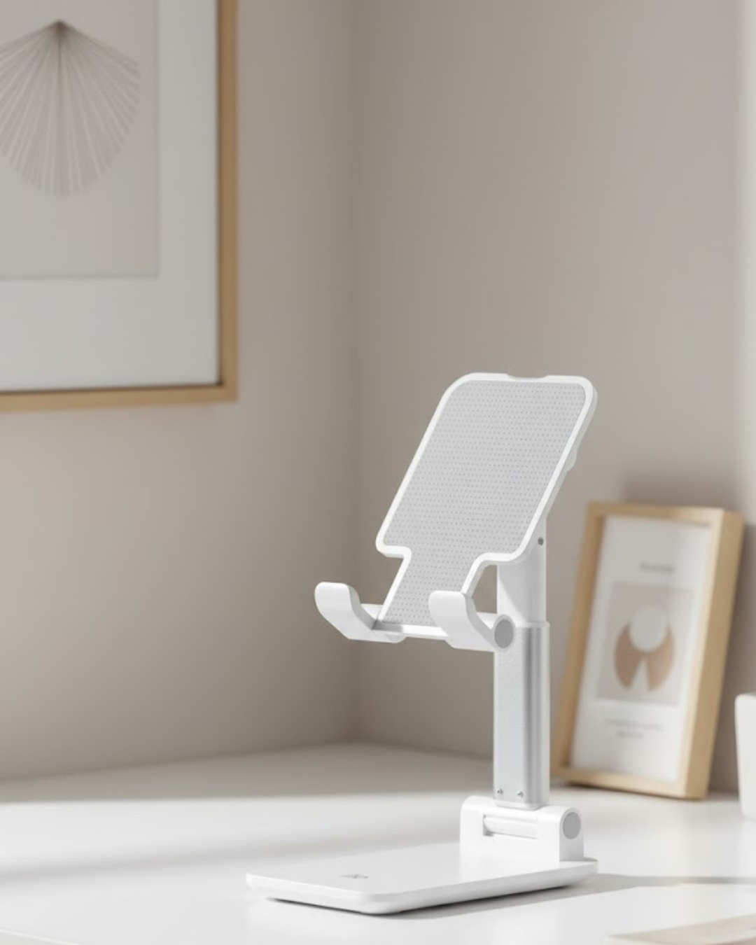 Katlanabilir masaüstü telefon tutucu, modern yaşamın gerektirdiği konfor ve pratikliği bir araya getiren ergonomik bir üründür. Telefonu uzun süre elde tutmadan kullanmak isteyenler için ideal olan bu stand, çalışma masasında düzenli bir alan oluşturmayı amaçlar. Ayarlanabilir yükseklik ve açı özellikleri sayesinde ekranı göz hizasına getirerek daha sağlıklı bir kullanım deneyimi sunar.