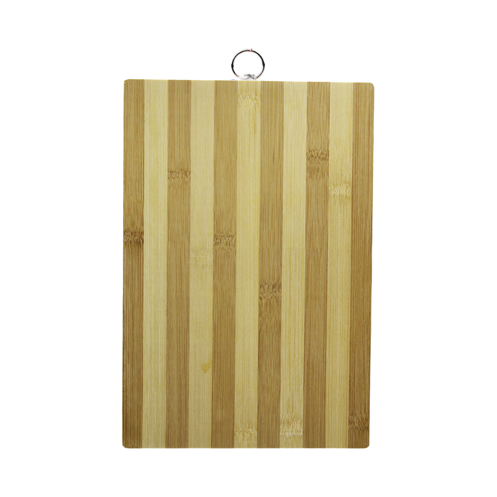 Ahşap 20X30Cm Beyaz Çizgili Bambu Kesim Panosu Metal Kulplu