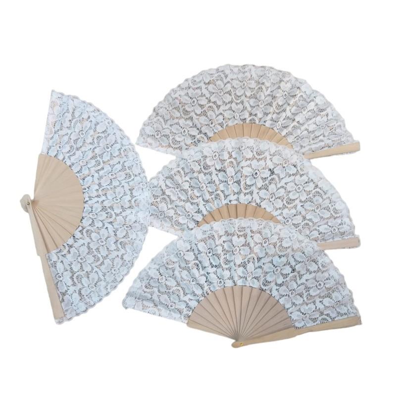 Ahşap Dantelli Yelpaze Beyaz Renk 12 Adet