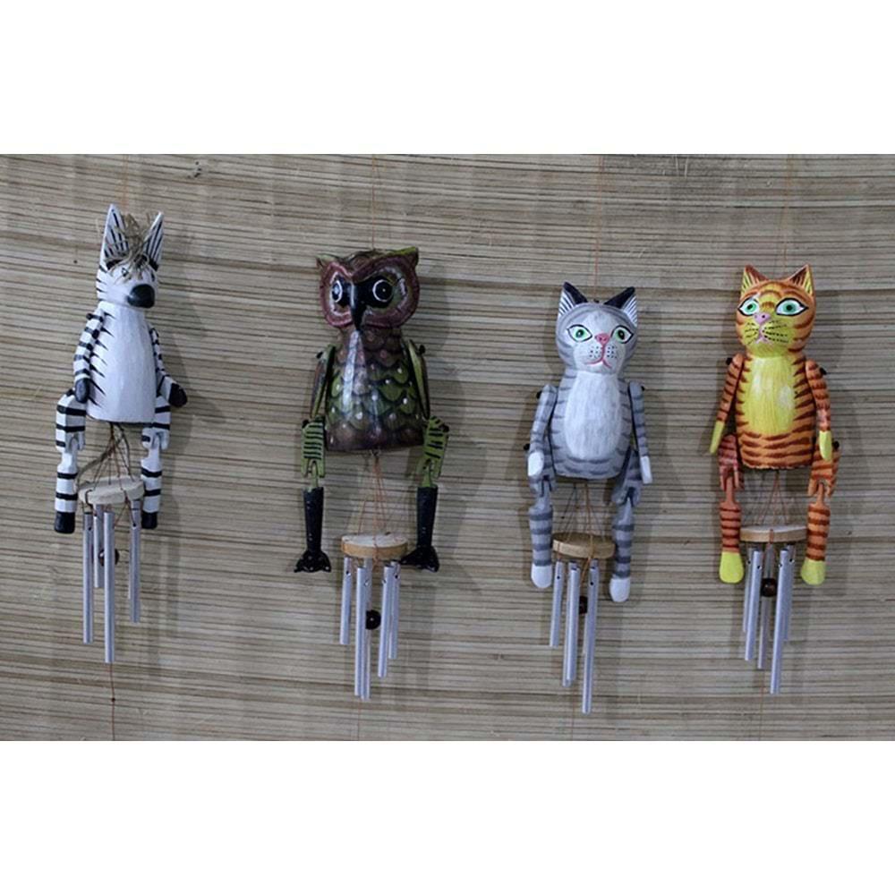 Ahşap Hayvan Figürlü Rüzgar Çanı