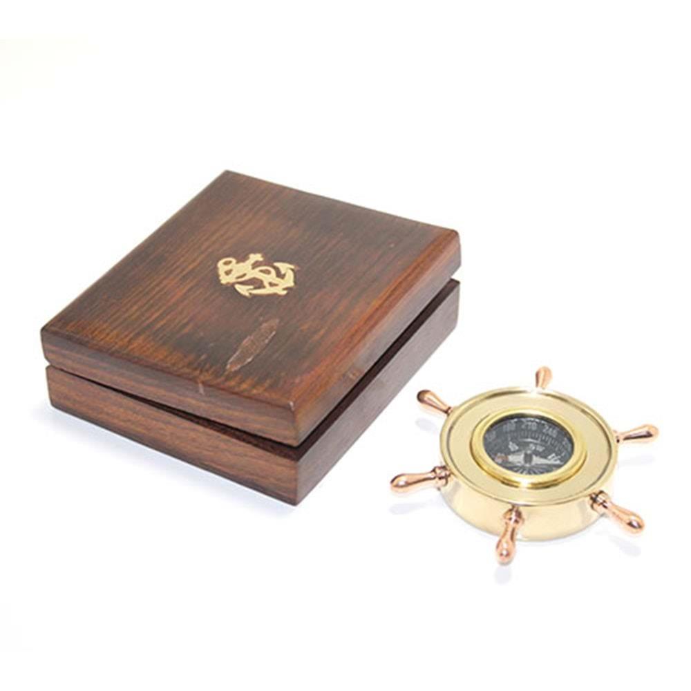 Ahşap Kutulu Pirinç Dümenli Pusula