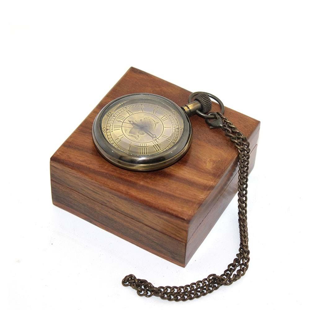 Ahşap Kutulu Pirinç Köstekli Saat