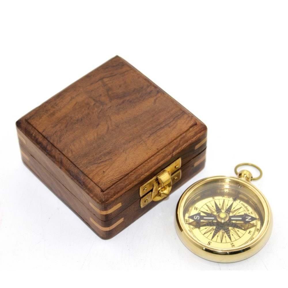 Ahşap Kutulu Pirinç Pusula